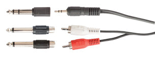 View full details3.5 stereo jack plug (M) to 2 x RCA jacks (M). Also includes 3 adaptor jacks - 1 x 3.5 stereo jack (F) to 6.3 stereo jack (M); 2 x RCA jack (F) to ...