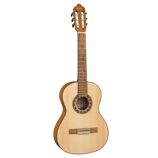 View full detailsVALENCIA - ¾ size classical guitar. Sitka spruce top. Nato back and sides. ABS 5 ply black/white top binding. ABS black side and neck binding....