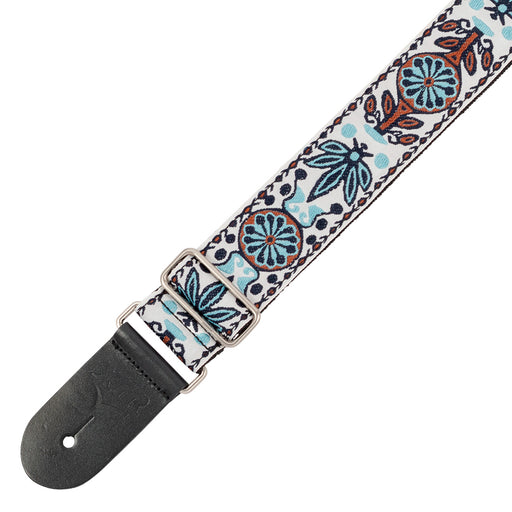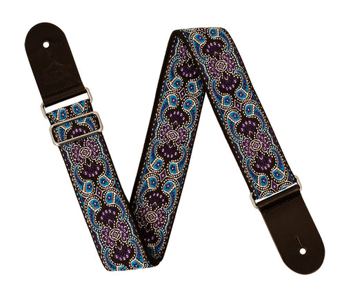 View full details2 inch deluxe woven jacquard poly cotton guitar strap with comfortable, two layer black poly backing. Premium black leather ends, smooth chrome sli...