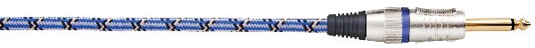 20 foot noiseless braided cable. 6.5mm O/D. Straight to straight heavy duty diecast connectors with gold shafts. Blue.