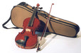 Solid carved top and back. Solid maple neck and ribs. Ebony fingerboard and pegs, alloy tailpiece with 4 adjusters, genuine purfling, German bridge and tailgut. Wood bow with natural hair. Complete with shaped plush lined case with shoulder strap.