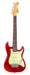 Traditional 60’s style solid basswood body. Maple neck with rosewood fingerboard. 21 frets. 22” scale. 3 single coil pickups. 1 volume and 2 tone controls. 5 way switch. Ivory pickup covers and knobs. Vintage mint green 3 ply scratchplate. Chrome Kluson style machine heads. Vintage tremolo. Supplied with SX heavy duty 7mm padded gig bag and UPlay Guitar Guide with free online lessons. Candy apple red.